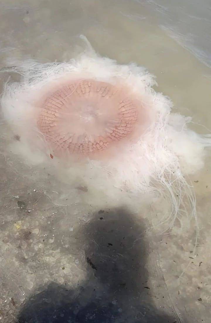 El ejemplar hallado en esta ocasión era de un tamaño considerable: medía 60 centímetros de diámetro “y a eso hay que agregarle la extensión de sus filamentos”, dijo Sánchez, quien precisó que esta medusa se distingue por tener una campana de color blanco con un centro rosado.
