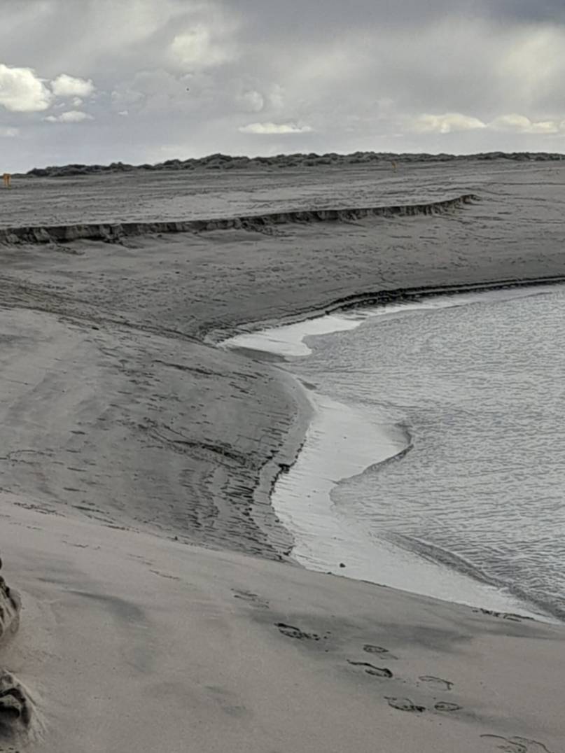 “En estos días vimos que el mar, en forma natural, ha ingresado allí formando una especie de olla de 30 metros para el lado del territorio, desde la línea de marea y una barranca de 2 metros de profundidad aproximadamente”, expresó.