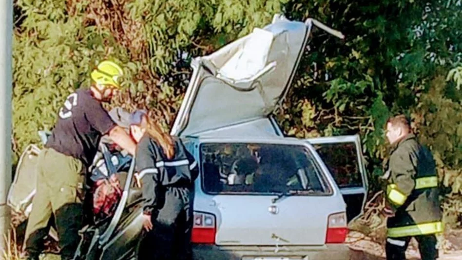 Los uniformados verificaron junto a personal de salud del hospital local y Bomberos Voluntarios que un hombre se encontraba atrapado dentro de un automóvil Fiat Uno Fire por lo que los Bomberos debieron utilizar tijeras de corte y demás equipos para sacarlo del habitáculo.