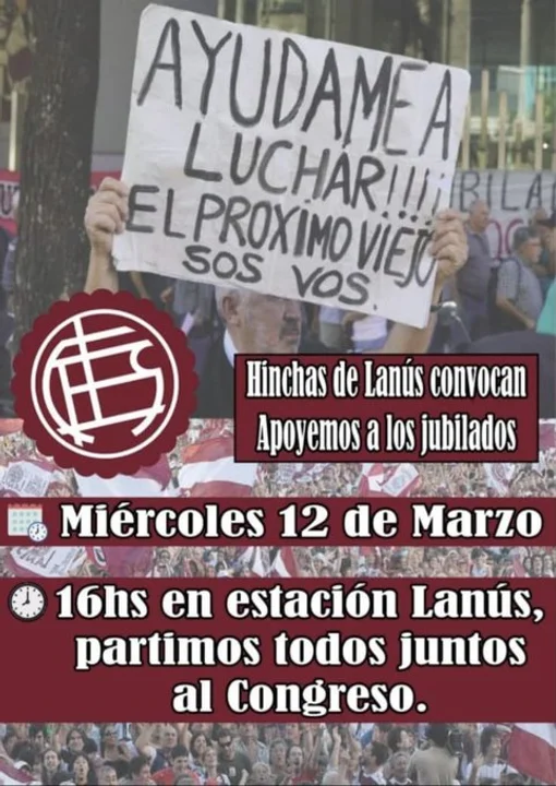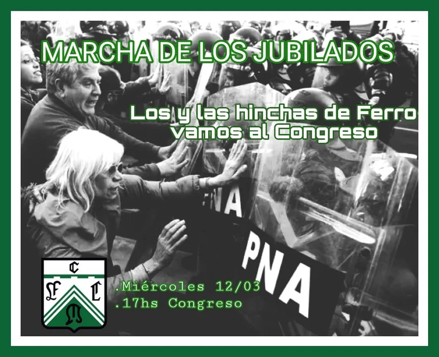 Alrededor de 15 grupos de hinchas se autoconvocaron para unirse, junto a los jubilados, a la movilización prevista para el próximo 12 de marzo en contra de las medidas y recortes del Gobierno.