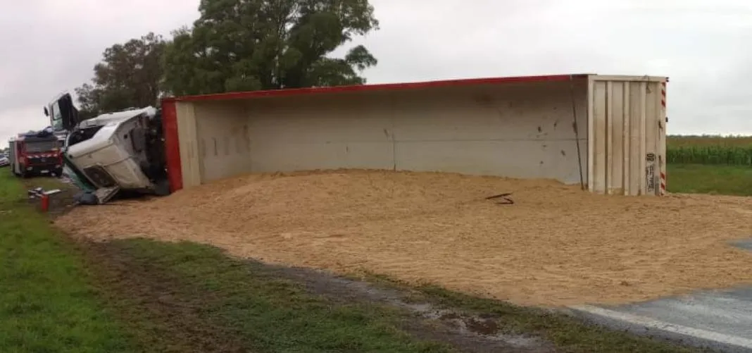 El siniestro se registró en las cercanías de la Estancia San José, a unos tres kilómetros al oeste del cruce con la Ruta Provincial 1. Según las primeras informaciones, el camión de la empresa «TyS Transporte», que transportaba arena, se despistó mientras circulaba en dirección este-oeste, desde Entre Ríos hacia Añelo, Neuquén. Testigos del hecho señalaron que el vehículo perdió el control y, al intentar retomarlo, volcó.