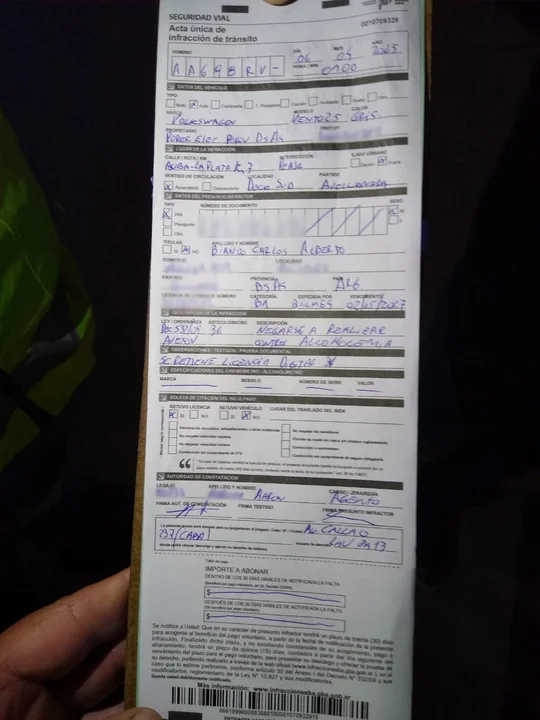 Según el acta, publicada por el periodista Manu Jove en X, el funcionario «se negó a realizar el control de alcoholemia». A su vez, fuentes de Seguridad Vial confirmaron que el funcionario viajaba sólo, por lo que tuvo que esperar en el peaje a que lo vayan a buscar para continuar su viaje.