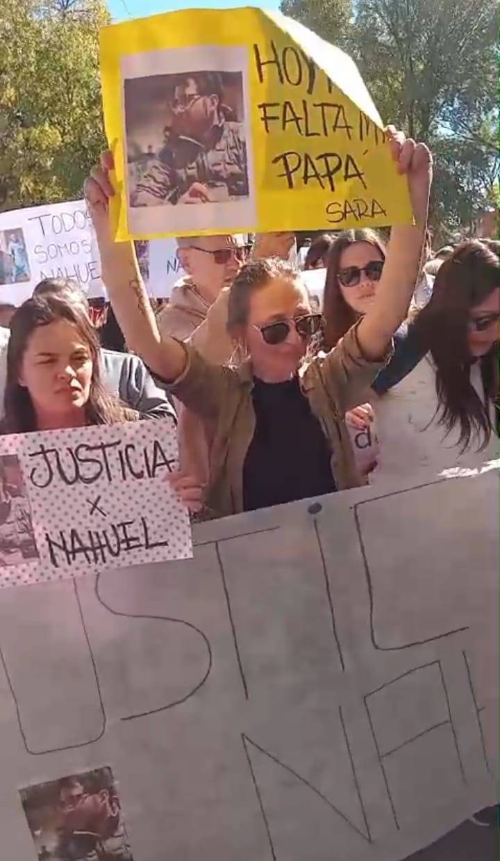 Con aplausos sostenidos, gritos de «queremos justicia» y pancartas que recordaban a la víctima, los manifestantes recibieron el agradecimiento de la familia de Nahuel, quien era padre de una niña de 3 años, muy querido en esa localidad, trabajaba en una farmacia y había sido jugador de fútbol.