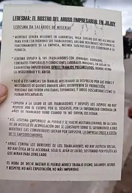El Grupo Ledesma, de Jujuy, cuyo buque insignia es el ingenio azucarero homónimo despidió a 311 trabajadores desde fines de febrero hasta aquí. Un fuerte achicamiento en su plantilla de empleados de distintas áreas del que poco se habla en esa provincia porque se trata de una poderosa empresa, propiedad de los Blaquier, con la que nadie quiere entrar en conflicto. Sus influencias van desde el mundo de la política y empresarial, hasta la vida cotidiana de la ciudad de Libertador General San Martín –en donde está la planta– porque 7.000 personas dependen de los sueldos que la firma paga todos los meses.