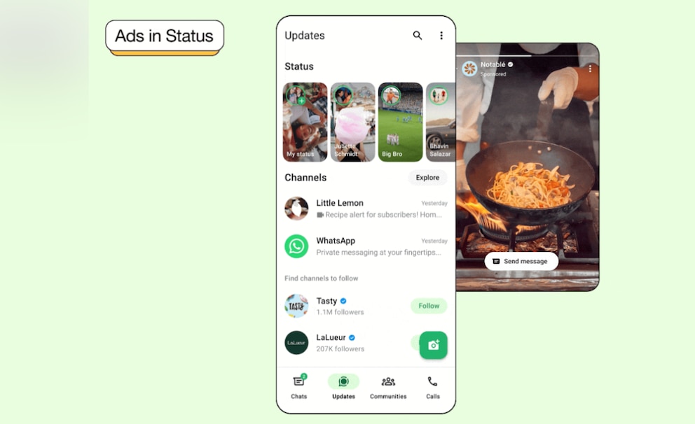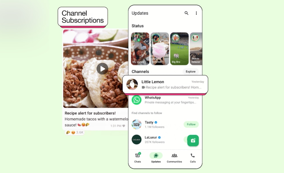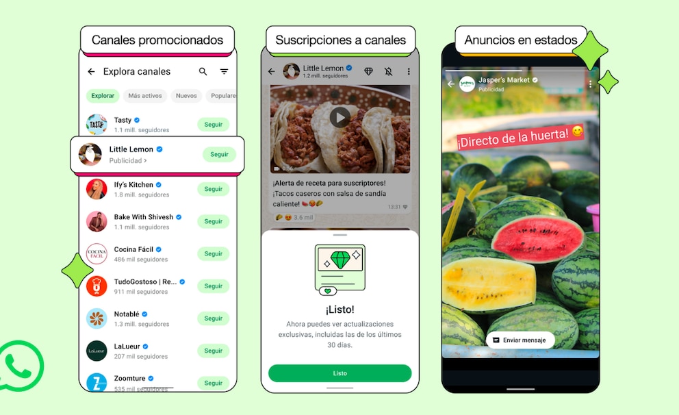 WhatsApp presentó tres nuevas funciones para la pestaña de novedades, enfocadas en los canales y estados: canales promocionados, anuncios en los estados y la opción de suscribirse a canales.