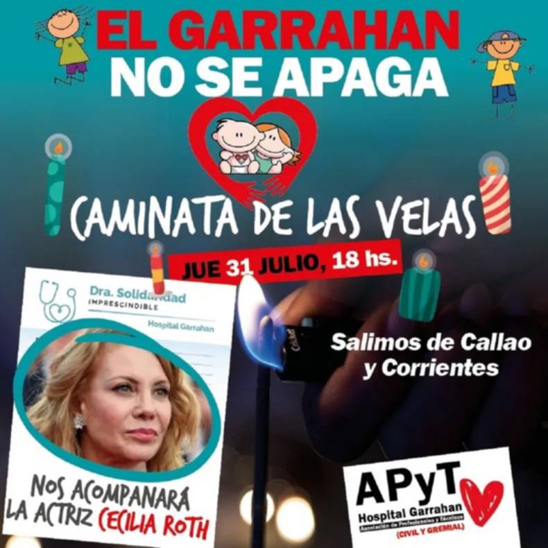 La Asociación de Profesionales y Técnicos del Hospital Garrahan confirmó la movilización,que partirá en las avenidas Callao y Corrientes este jueves a las 18, y tendrá la presencia de la actriz Cecilia Roth.