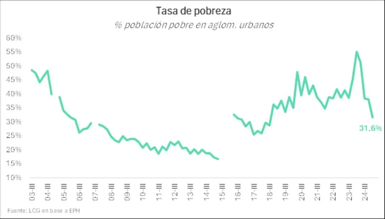 El informe de LCG coincide con el Nowcast de pobreza elaborado por Martín González Rozada, codirector de la Maestría en Econometría de la Universidad Di Tella, que estima una pobreza del 31,6% para el primer semestre del año (enero-junio).