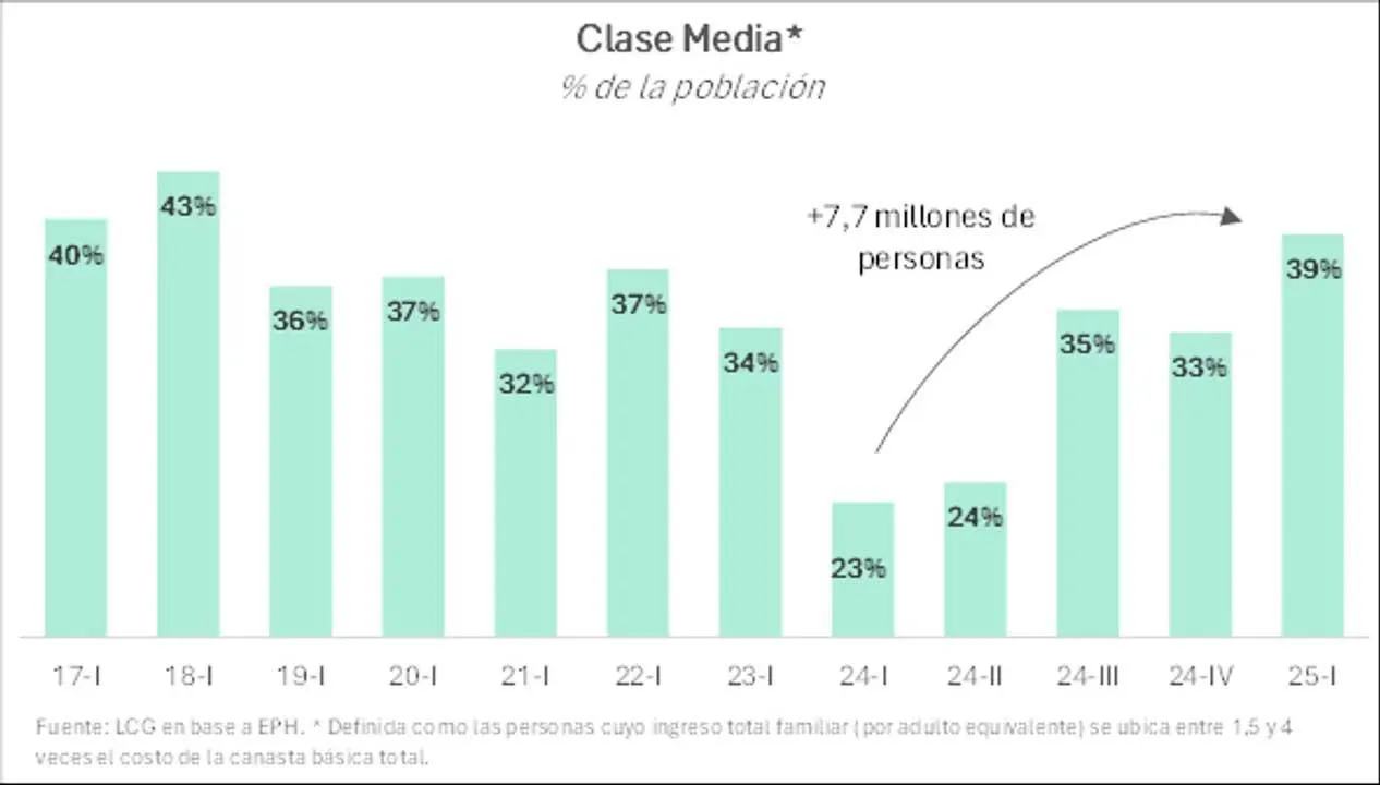 Para el primer trimestre de este año, la clase media habría ascendido al 39% de la población, sumando 7,7 millones de personas en el último año y recuperando un «nivel semejante» a los niveles previos de la pandemia.