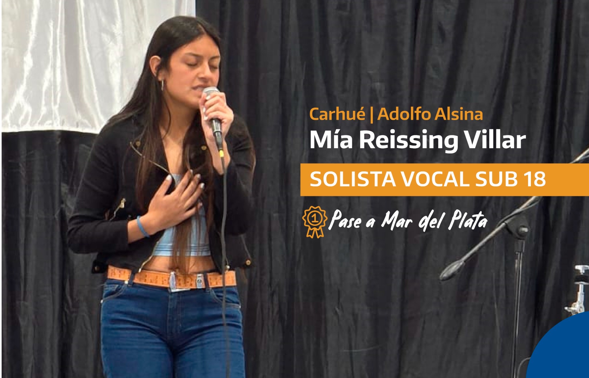 La noticia más destacada llegó de la mano de Mía Reissing Villar, quien se consagró primera en la disciplina Solista Vocal Sub 18, logrando la clasificación a la Final Provincial en Mar del Plata.
