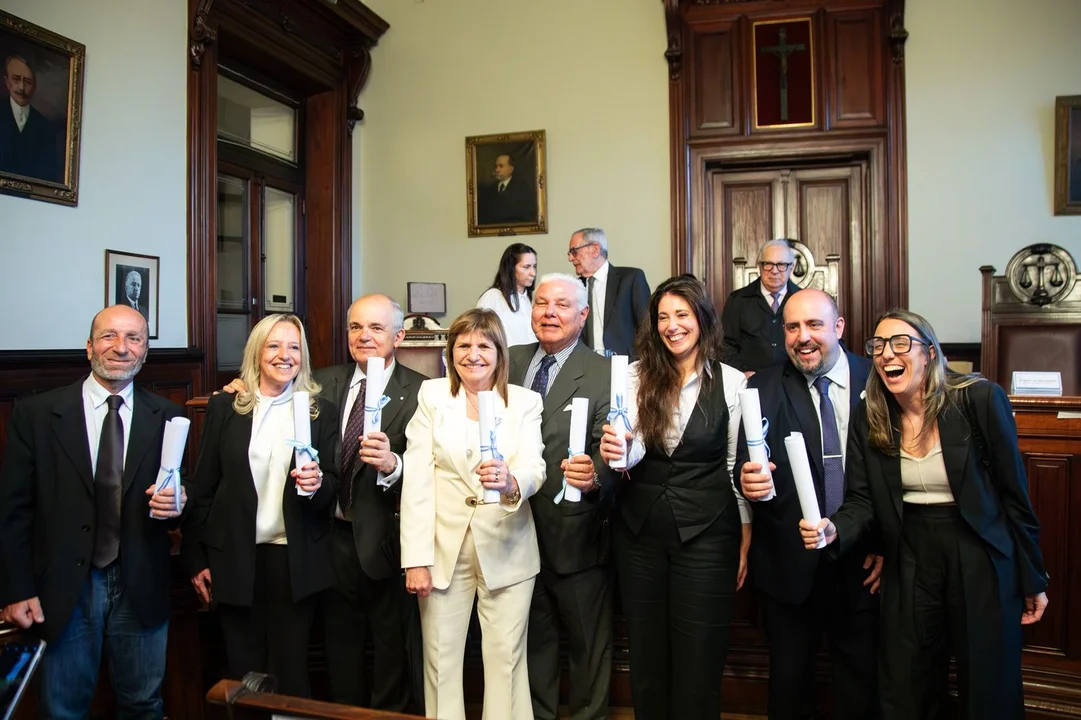La ministra de Seguridad y senadora nacional electa, Patricia Bullrich, y sus compañeros de la lista de La Libertad Avanza por la Ciudad de Buenos Aires fueron proclamados como legisladores nacionales en una ceremonia que se llevó a cabo en el Palacio de Tribunales.