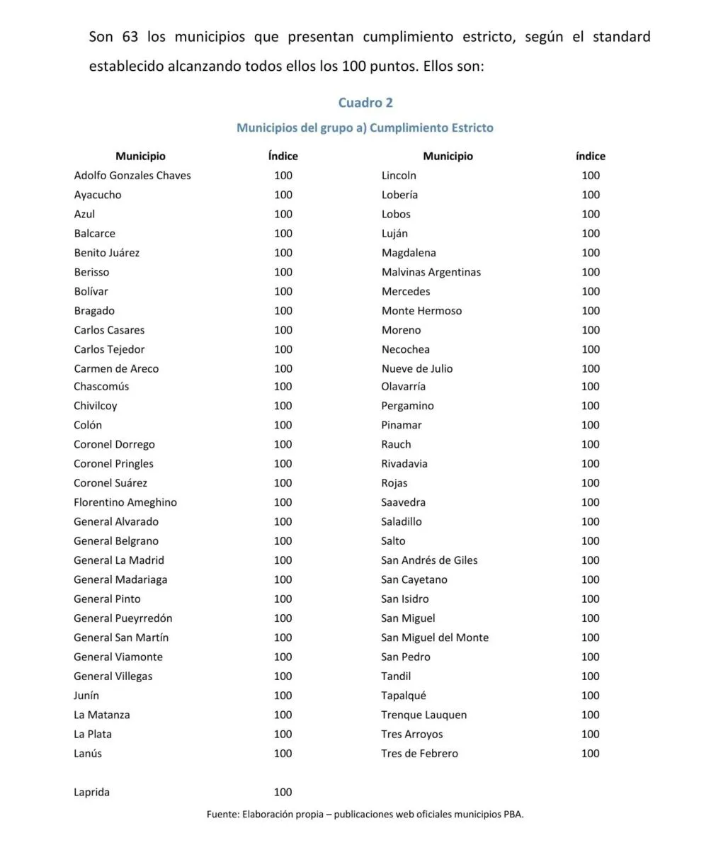En este contexto, el municipio de Adolfo Alsina alcanzó un nivel medio de cumplimiento con 70 puntos sobre 100, al igual que otras 17 comunas que muestran un menor nivel de información publicada, así