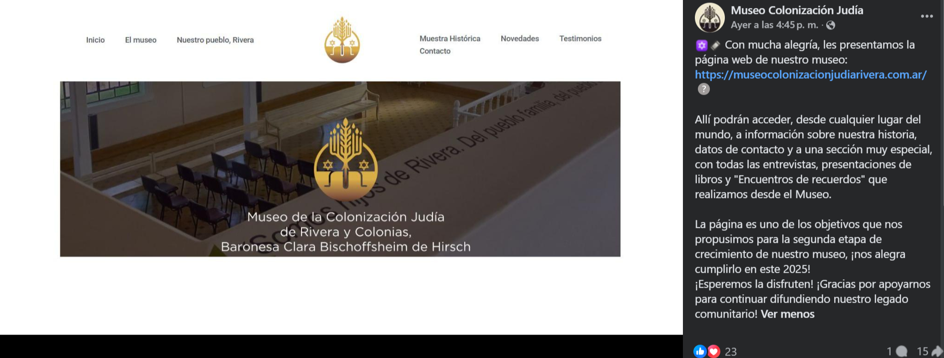 El Museo de la Colonización Judía de Rivera “Clara Bischoffsheim de Hirsch” presentó oficialmente su nueva página web, una herramienta fundamental para acercar su historia, memoria y patrimonio cultural a personas de todo el mundo.