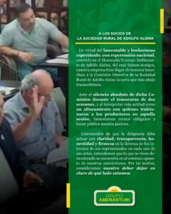 Inicio» Cuando callar no es una opción: Aberasturi realizó un fuerte reclamo interno en la Sociedad Rural de Adolfo Alsina»1