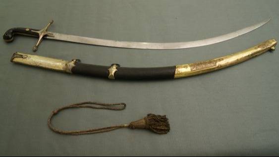 El sable corvo, adquirido por San Martín en Gran Bretaña a principios de 1813, es considerado el máximo símbolo del mando militar en la historia argentina. Posee una empuñadura de ébano y mide 95 centímetros de largo.