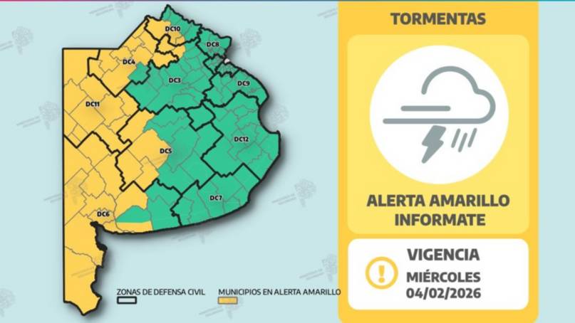 El Servicio Meteorológico Nacional ratificó el alerta amarillo por tormentas para Adolfo Alsina y todo el Sudoeste bonaerense para la tarde-noche del miércoles y madrugada del jueves.