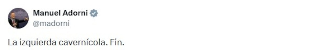 En la misma línea tuiteó Manuel Adorni, ex vocero presidencial y actual Jefe de Gabinete de Ministros. “La izquierda cavernícola. Fin”, redactó con una imagen de los lanzamientos de las bombas molotov.