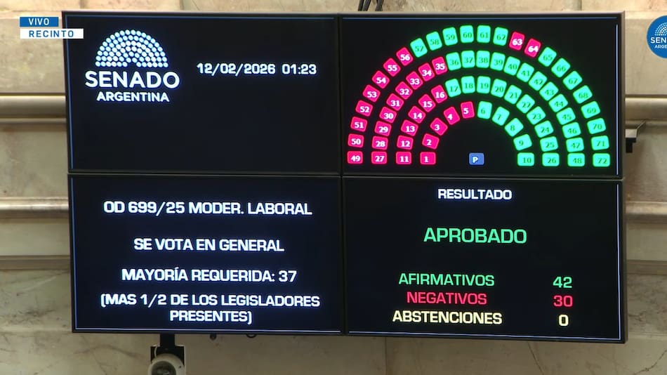 El Gobierno logró un triunfo contundente en el Senado al aprobar por 42 contra 30 votos, el proyecto de modernización laboral, una de las principales iniciativas que el oficialismo propone para favorecer la creación de nuevos empleos.