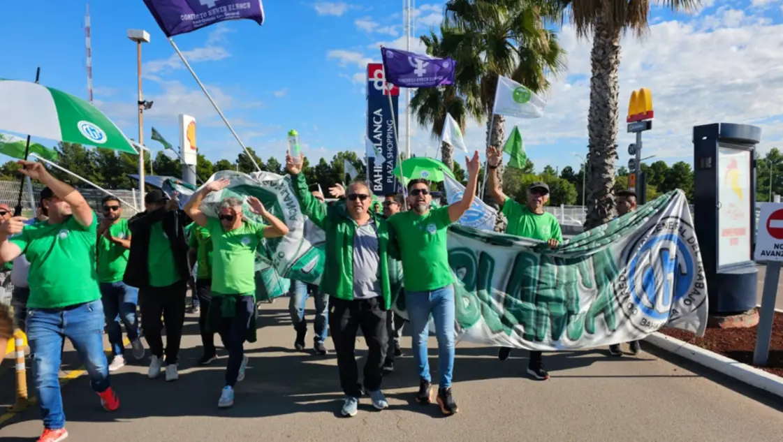 Un grupo de afiliados al sindicato de Empleados de Comercio encabezados por su titular local, Raúl Oviedo, se manifestó esta mañana en el ingreso al Bahía Blanca Plaza Shopping para impedir que los negocios abran sus puertas en este Viernes Santo.