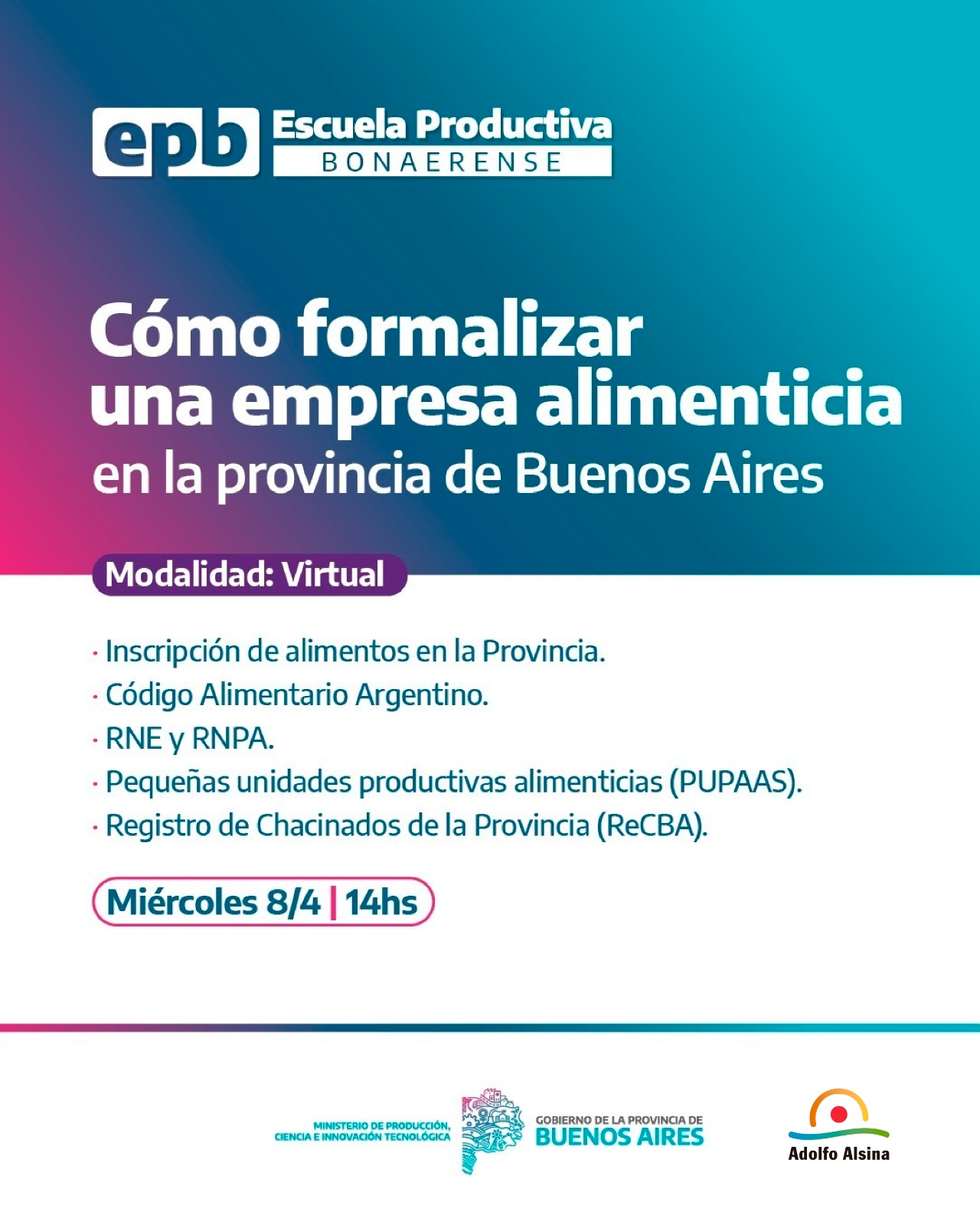 La capacitación es organizada por la Escuela Productiva Bonaerense, dependiente del Ministerio de Producción, Ciencia e Innovación Tecnológica de la Provincia de Buenos Aires, y cuenta con la invitación de la Municipalidad de Adolfo Alsina.