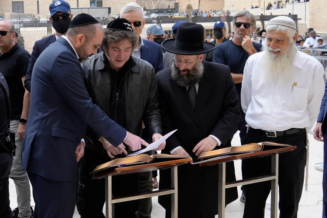 La primera actividad del presidente Milei en territorio israelí fue la visita al Muro de los Lamentos.