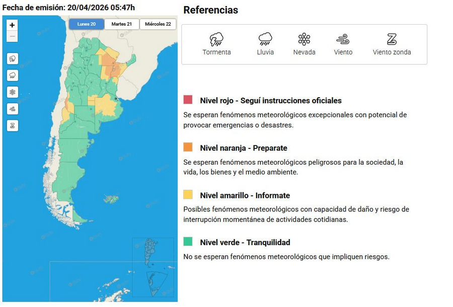 El Servicio Meteorológico Nacional emitió una alerta amarilla por lluvias que alcanza a Adolfo Alsina y una amplia región del país, incluyendo el oeste de la provincia de Buenos Aires, el norte de La Pampa, el sur de Córdoba y el sur de Mendoza.