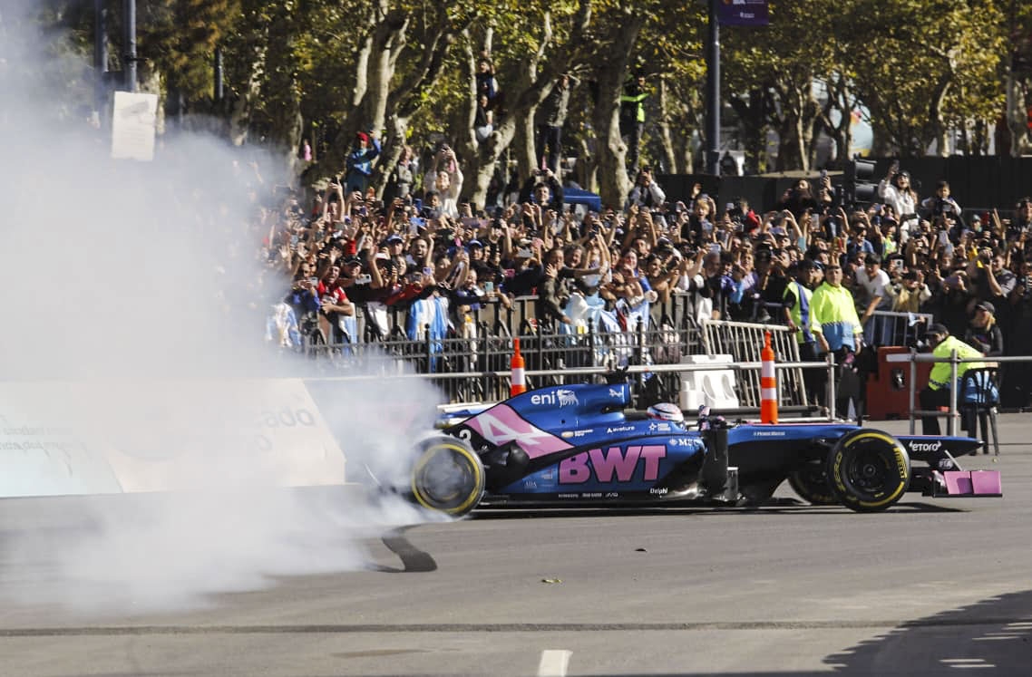 La acción comenzó con su primera aparición a bordo del Lotus E20, el monoplaza que supo destacarse en la temporada 2012 de la Fórmula 1. Allí, el piloto argentino recorrió distintos tramos de Avenida del Libertador y Avenida Sarmiento durante casi 20 minutos, en los que aceleró, realizó maniobras exigidas y se ganó la ovación de los fanáticos con varios “donuts”.