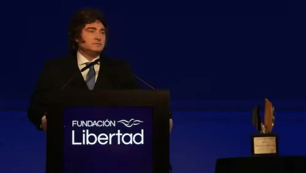El presidente Javier Milei fue el orador principal esta noche en la cena anual de la Fundación Libertad, en la que estuvieron presentes la senadora Patricia Bullrich y el expresidente Mauricio Macri. Durante su discurso, defendió el ajuste aplicado por su Gobierno y cuestionó a quienes lo critican por la magnitud del recorte.